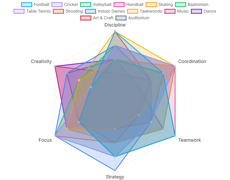 From the discipline of shooting to the strategy of chess, the creativity of dance and art to the teamwork in football, and the self-defense skills of Taekwondo, every sport and extracurricular activity teaches valuable lessons, helping students grow into confident, well-rounded individuals, both on and off the field.