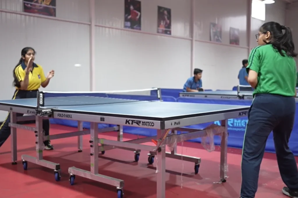 At our school, we have a state-of-the-art Table Tennis facility equipped with six international-standard tables and advanced training tools. The space is designed to support both practice and competition in a focused, well-maintained environment. To further enhance skill development, the facility includes a robotic ball feeder that simulates real-match scenarios by delivering balls at varying speeds and angles. This hands-on experience helps students improve their reflexes, technique, and skills.