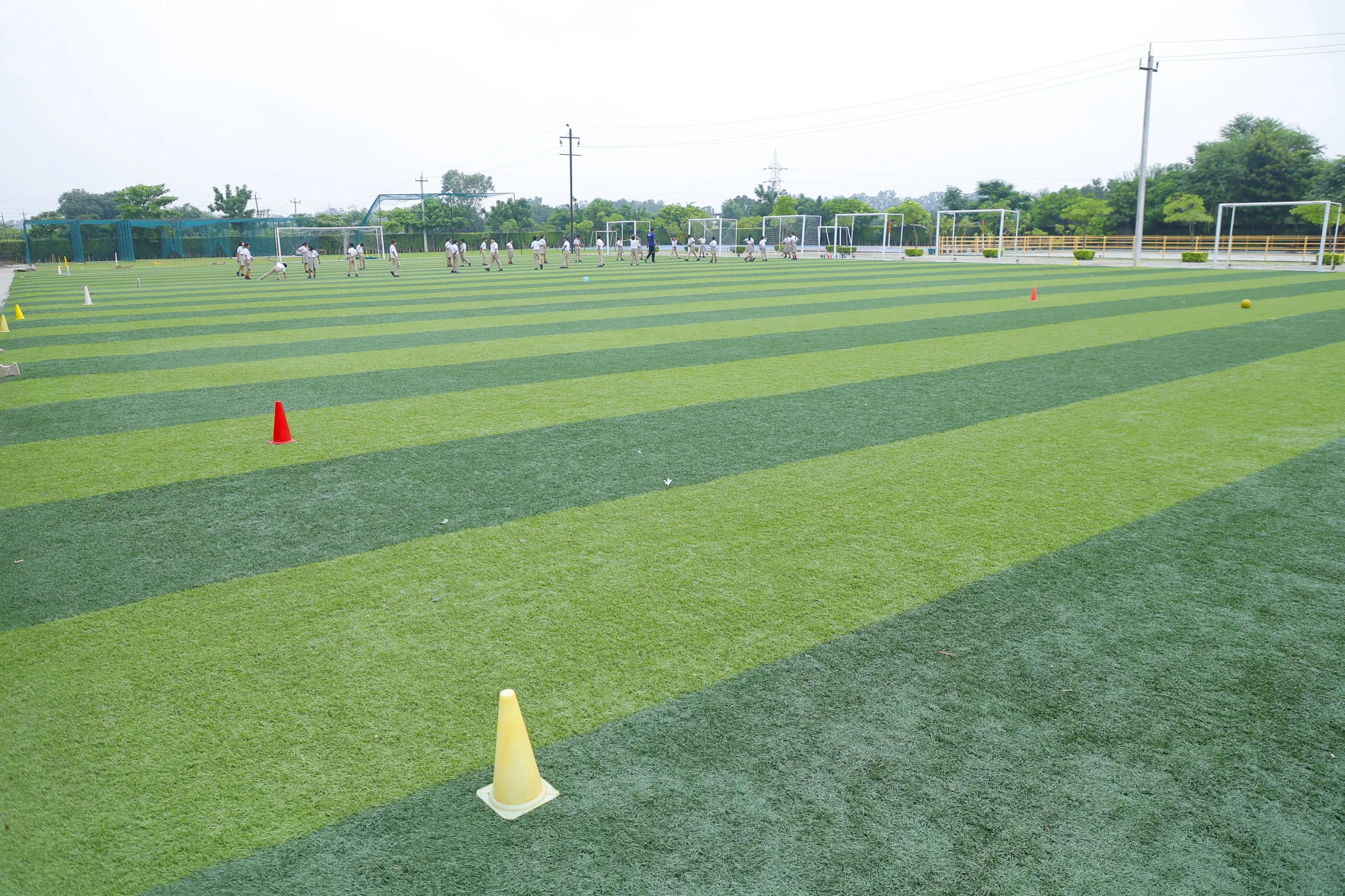 Our school offers six dedicated cricket practice nets, purposefully designed to build and sharpen the skills of budding batsmen and bowlers. The facility includes a high-tech bowling machine that can deliver balls at varying speeds, simulating both swing and spin. This advanced setup gives students the opportunity to train against diverse bowling styles, helping them develop technique, timing, and confidence for competitive-level cricket.